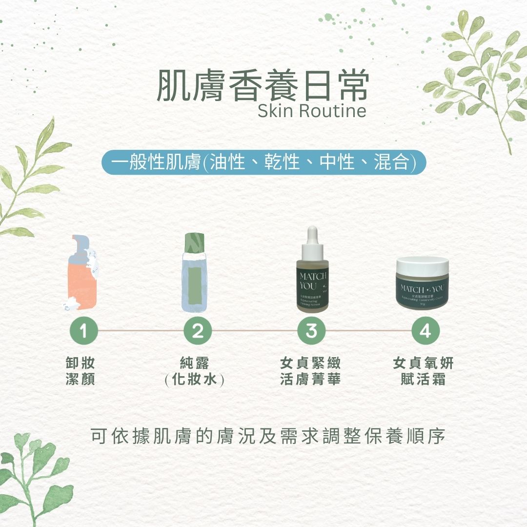 添加乳香、羅馬洋甘菊、真正薰衣草、廣藿香精油。夜間使用能釋放疲憊,安撫情緒;起床後使用,蓄養一天活力,全天候呵護。