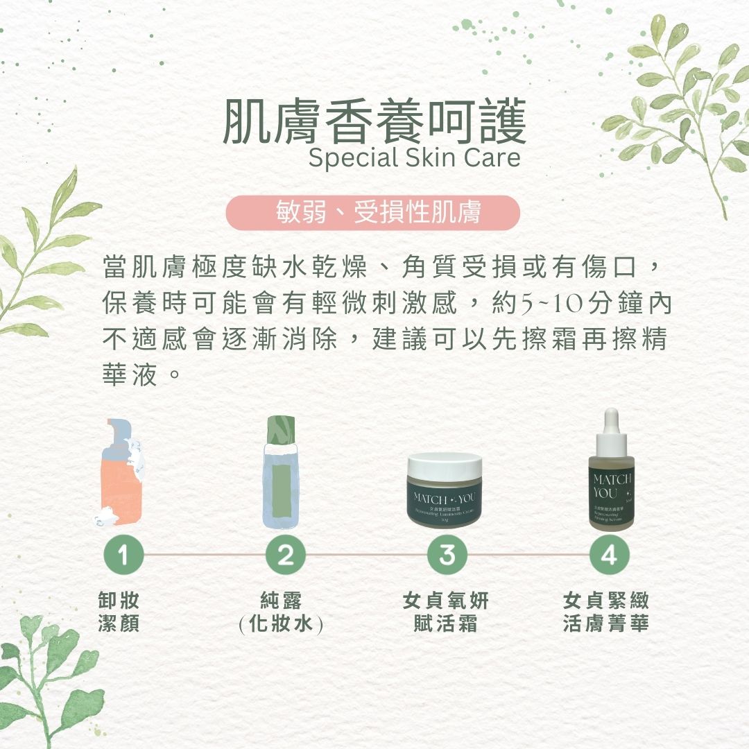 感受5天有感律動,展現光采好氣色,結合高山女貞子植物萃取、二代六胜肽、韓國專利植萃複方(積雪草、洋甘菊、迷迭香等)、燕麥萃取等黃金比例配方,提供肌膚多方位的補給,為疲倦肌提亮膚色帶來好氣色、淡化細紋、展現水嫩光采,安撫脆弱肌膚,重啟健康水潤感。將植物精油融入養膚保養中,如同沐浴在充滿陽光與大自然的柔軟香氣,為身心注入極致能量,享受頂級呵護,讓每一天都成為與自己對話的美好時刻!